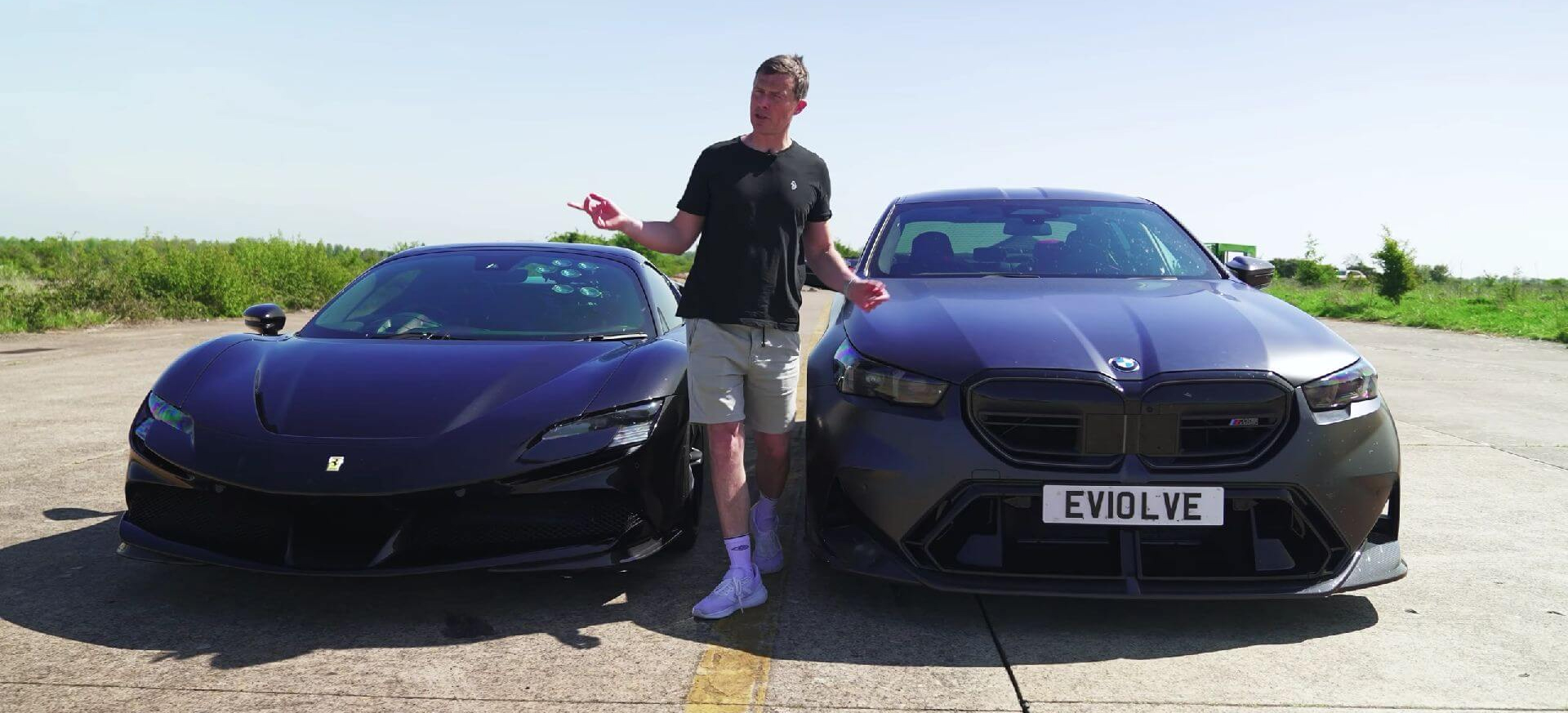 Ύστερα, είναι η διαφορά στην αεροδυναμική. Αμφότερα τα μοντέλα είναι τετρακίνητα, ενώ η Ιταλίδα βάζει εξαιρετικά αποτελεσματικά τη ροπή της στο οδόστρωμα. Με τρεις ηλεκτροκινητήρες, τους δύο για τον μπροστινό άξονα, ο έλεγχος της πρόσφυσης είναι ιδανικός. Αξίζει να σημειωθεί ότι η όπισθεν κίνηση γίνεται μόνο μέσω ηλεκτρομοτέρ και όχι με μηχανική σύνδεση με τον θερμικό V8. Τι συμβαίνει όμως στην πράξη; Σε κάθε περίπτωση, το Maranello επικρατεί χωρίς ιδιαίτερη δυσκολία. Μπορεί σε νούμερα απόδοσης η BMW M5 να βρίσκεται μπροστά, αλλά το βάρος είναι περιοριστικός παράγοντας. Εκκινώντας από στάση για το 1/4 του μιλίου, η SF90 τερματίζει σε 9,6”, ενώ το βαρύ γερμανικό σεντάν σε 10,4”. Ακόμα και όταν ξεκινά καλύτερα, πάλι δεν μπορεί να διατηρήσει το βραχύ προβάδισμα έναντι του Cavallino. Σε αναμετρήσεις εν κινήσει, πάλι η Ιταλίδα αποκτά κεφαλή και δεν την αποχωρίζεται. Αναμενόμενα, επικρατεί και στο φρενάρισμα. Εκεί που η M5 είναι σαφώς καλύτερη είναι στην ηλεκτρική αυτονομία. Σύμφωνα με το αμερικανικό πρωτόκολλο μετρήσεων ΕΡΑ, μπορεί να διανύσει έως και 40 km. Ενώ η Ferrari περιορίζεται στα 14 km.