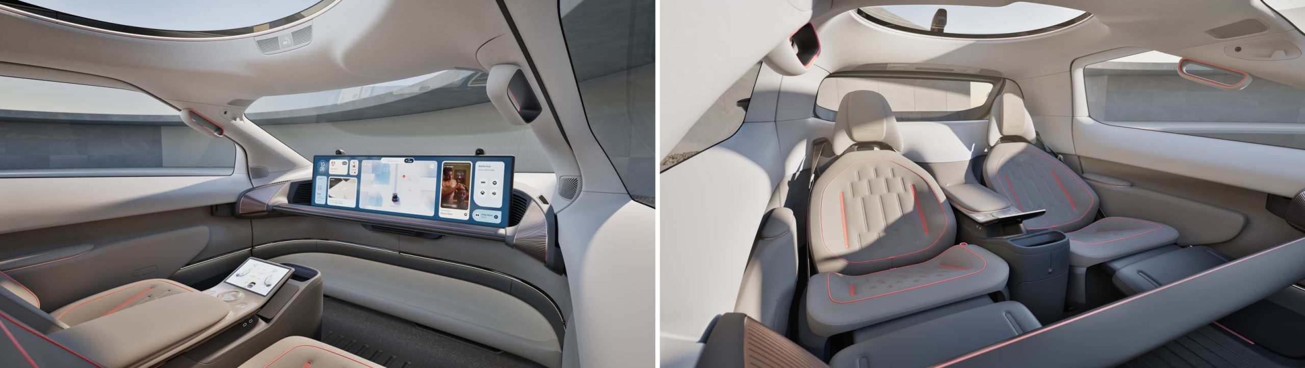 Οι επιβάτες θα κάθονται μπροστά από μια οθόνη 43 ιντσών που θα παρέχει διάφορα είδη ψυχαγωγίας ή πληροφορίες για τη διαδρομή. Το όχημα δεν θα διαθέτει τιμόνι και πεντάλ, αλλά υπάρχει ένας φυσικός διακόπτης μεταξύ των καθισμάτων που μπορεί να ακινητοποιήσει το όχημα.