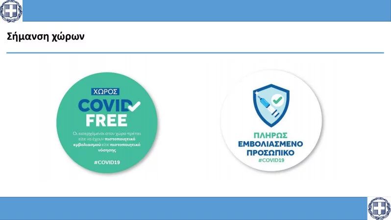 Ο κ. Γεωργιάδης τόνισε ότι ένα από τα τρία σηματάκια που θα μπορούν κατεβάσουν οι επιχειρηματίες από το gov.gr θα μπορεί να πληροφορεί ο επιχειρηματίας τους πελάτες του για το αν όλο το προσωπικό του είναι εμβολιασμένοι ή όχι.