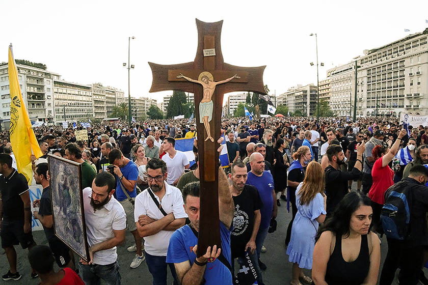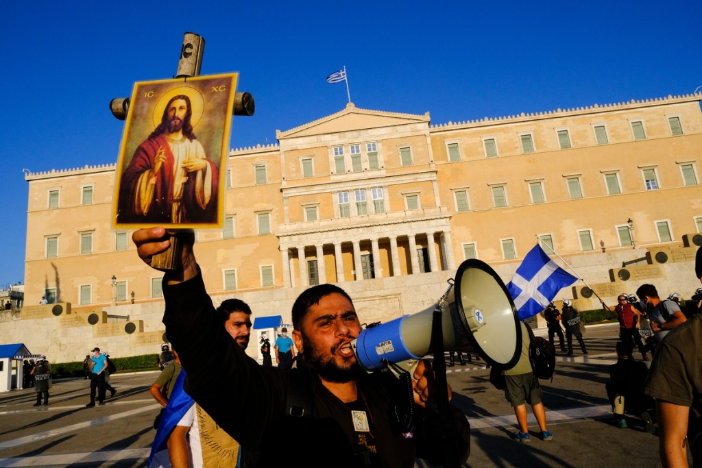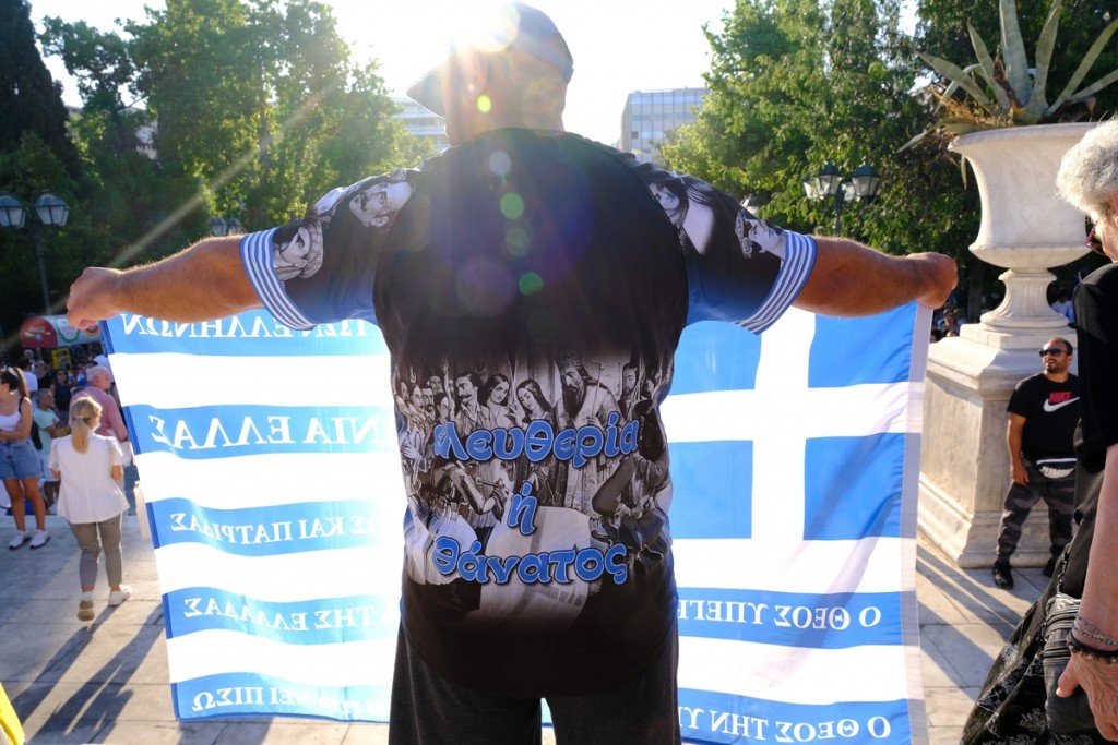 Περισσότεροι από 20.000 Έλληνες συγκεντρώθηκαν στο Σύνταγμα την Κυριακή για να διαμαρτυρηθούν για τον υποχρεωτικό εμβολιασμό, ενώ άλλοι τόσοι συγκεντρώθηκαν και στη Θεσσαλονίκη.