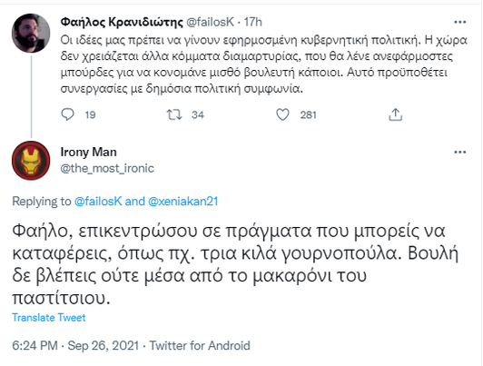 Τι ήθελε όμως να το πει αυτό; Οι αντιδράσεις δεν ήταν ακριβώς κείνο που θα ήθελε. Το κοινό στο οποίο απευθύνεται μάλλον δεν εκτιμά την στροφή του στην ρεαλπολιτίκ με αποτέλεσμα να ακολουθήσει ένας μικρός χαμός στα σχόλια…