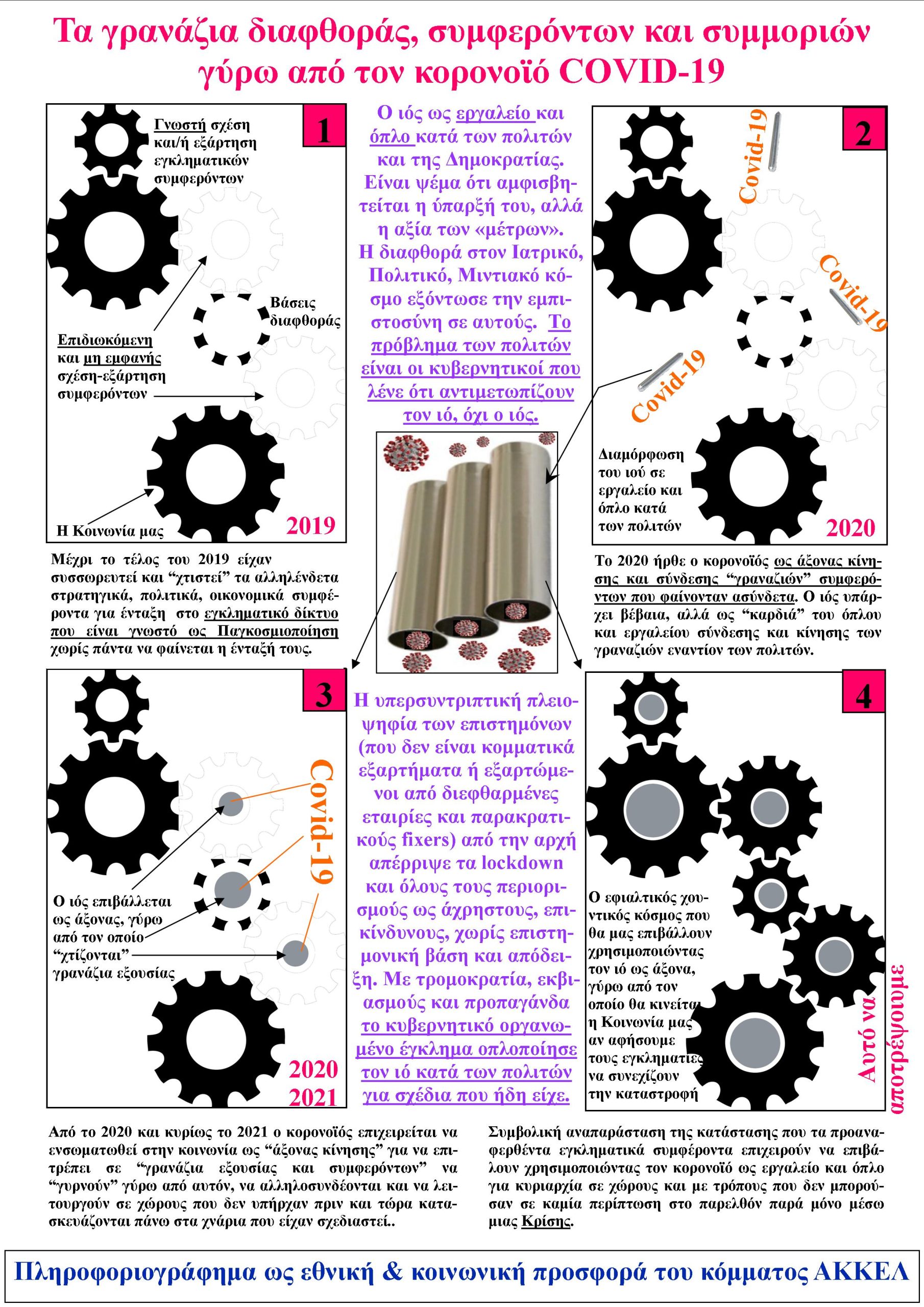 Πολεμούμε την Διαφθορά στον Ιατρικό, Ακαδημαϊκό, Πολιτικό και Μιντιακό χώρο που στην περίπτωση του κορονοϊού έχουν γίνει ένα πακέτο, καταστέλλοντας την ελευθερία των ιατρών και των δημοσιογράφων για να χουντοποιήσουν την κοινωνία. Ο κομματικός χώρος γύρω από τον Μητσοτάκη έχει γίνει ένα συνονθύλευμα επίορκων, εξαγορασμένων και κολλημένων κομματικών που κάνουν και λένε ό,τι τους πουν.