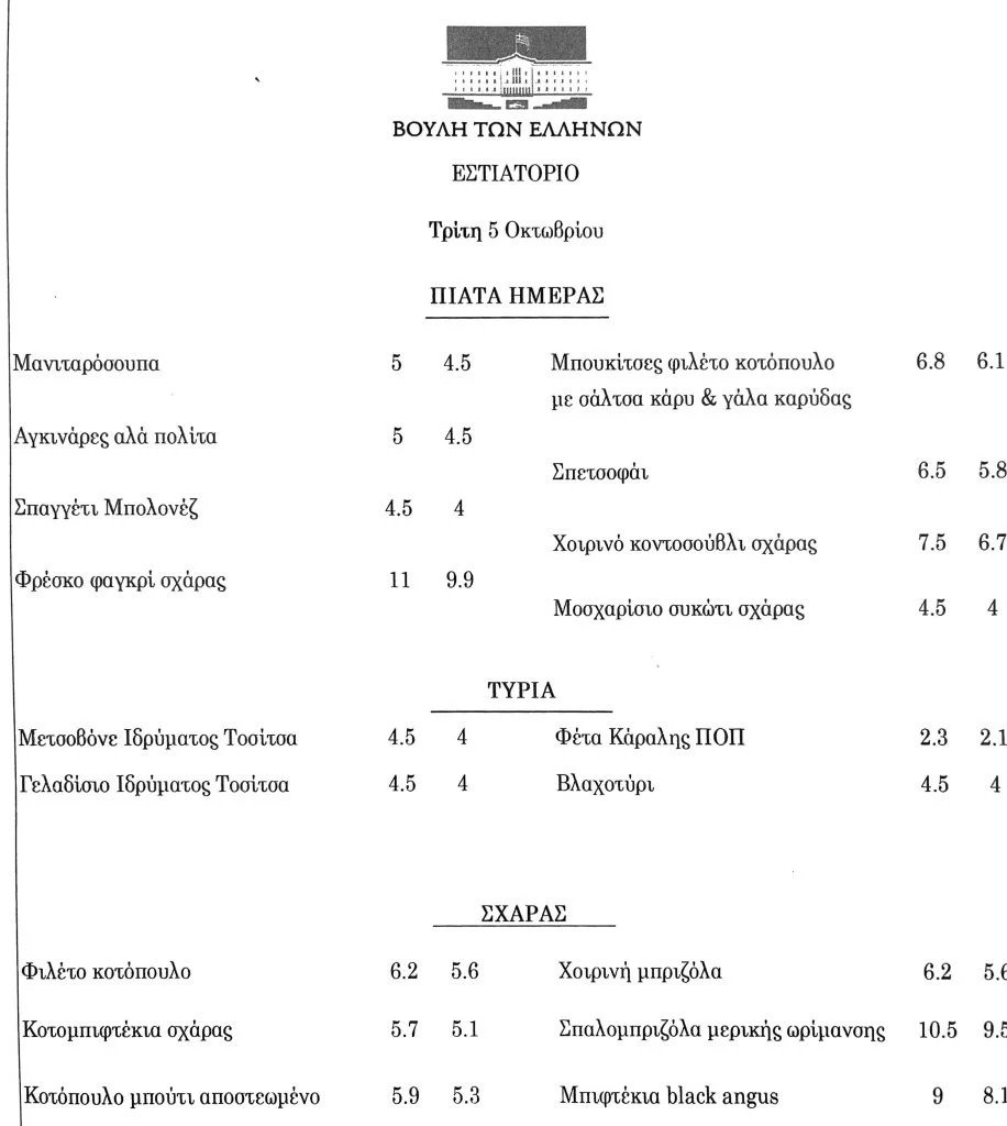 Λογικό και θεμιτό είναι στο εστιατόριο της Βουλής να σερβίρονται ελληνικά τοπικά προϊόντα, παρόλα αυτά όταν ο πρόεδρος της Βουλής είναι από τα Ιωάννινα (ο Κώστα Τασούλας είναι βουλευτής Ιωαννίνων) και όλα τα τοπικά προϊόντα είναι από την Ήπειρο… μάλλον κάτι παίζει.