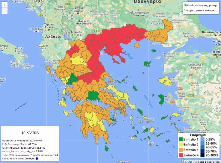 Παράλληλα, στην Καρδίτσα, ο δείκτης θετικότητας έχει σκαρφαλώσει στο 0,74% ενώ οι ολοκληρωμένοι εμβολιασμοί μετά βίας ξεπερνούν το 52%.