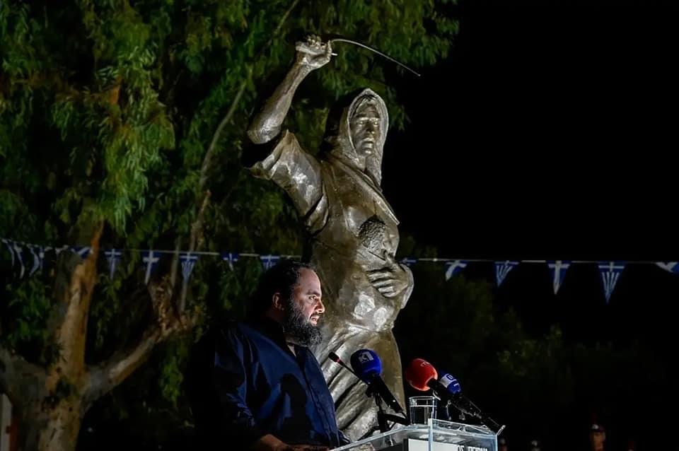 «Είμαι ιδιαίτερα χαρούμενος που βρίσκομαι σήμερα εδώ να εγκαινιάσουμε το άγαλμα της ηρωίδας Μανιάτισσας. Μην ξεχνάμε ότι η επανάσταση ξεκίνησε στις 17 Μαρτίου στην Αρεόπολη και μετά από 200 χρόνια βρισκόμαστε εδώ σε μια ελεύθερη δημοκρατική χώρα και κυρίαρχη», ανέφερε κατά τον χαιρετισμό του ο Βαγγέλης Μαρινάκης.