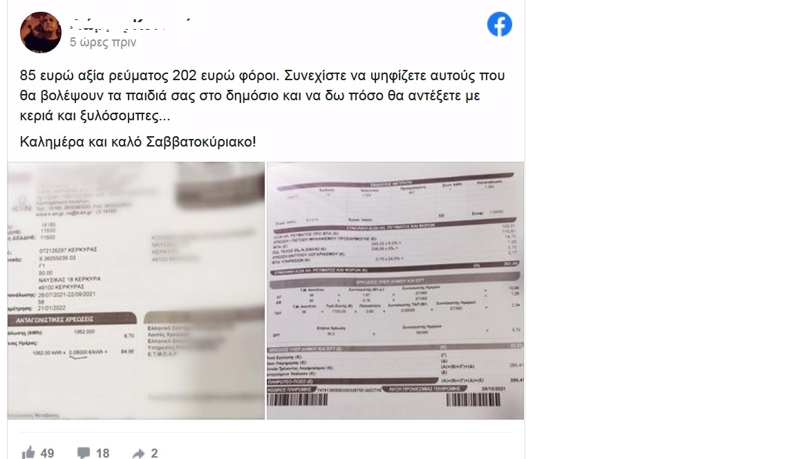 Ο αναγνώστης στην ανάρτηση του καταλήγει λέγοντας: «Συνεχίστε να ψηφίζετε αυτούς που θα βολέψουν τα παιδιά σας στο δημόσιο και να δω πόσο θα αντέξετε με κεριά και ξυλόσομπες…»