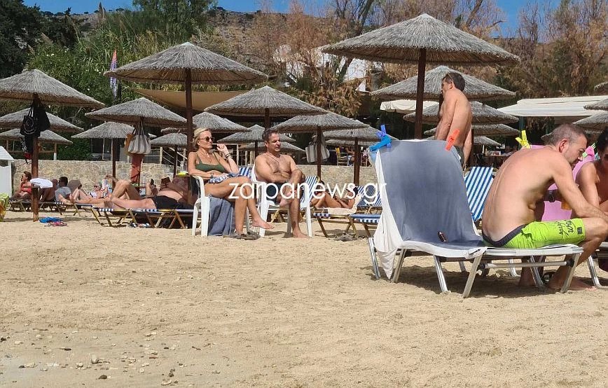 Όπως γράφει το τοπικό σάιτ zarpanews.gr χαμογελαστός, ανέμελος και ευδιάθετος, ο Κυριάκος Μητσοτάκης, συνοδευόμενος από την σύζυγό του Μαρέβα, έφτασαν στην παραλία λίγο μετά τις 11.