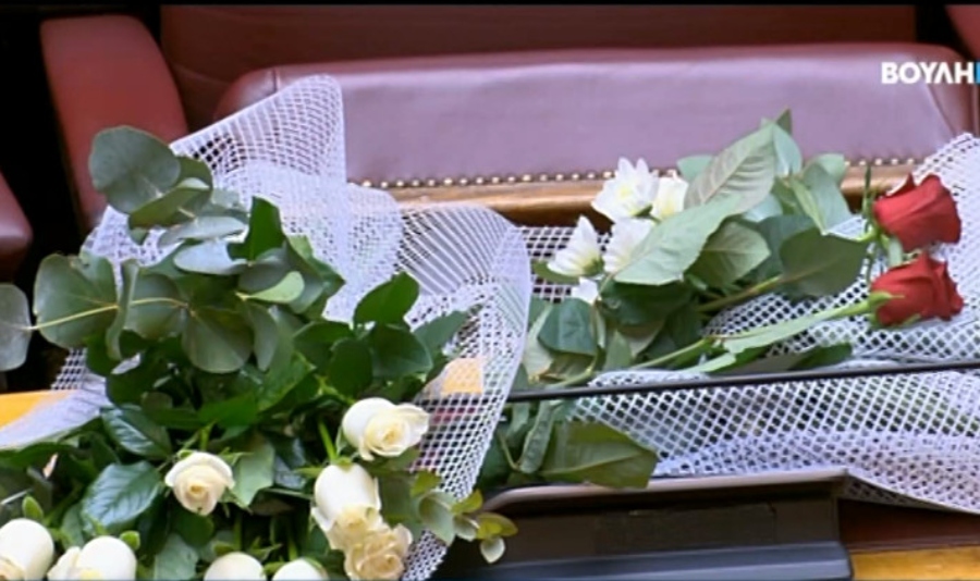 Ακόμη ο πρόεδρος της Βουλής άφησε λουλούδια στο έδρανο στο οποίο καθόταν η Φώφη Γεννηματά, ως φόρο τιμής στην πρόεδρο του ΚΙΝΑΛ.