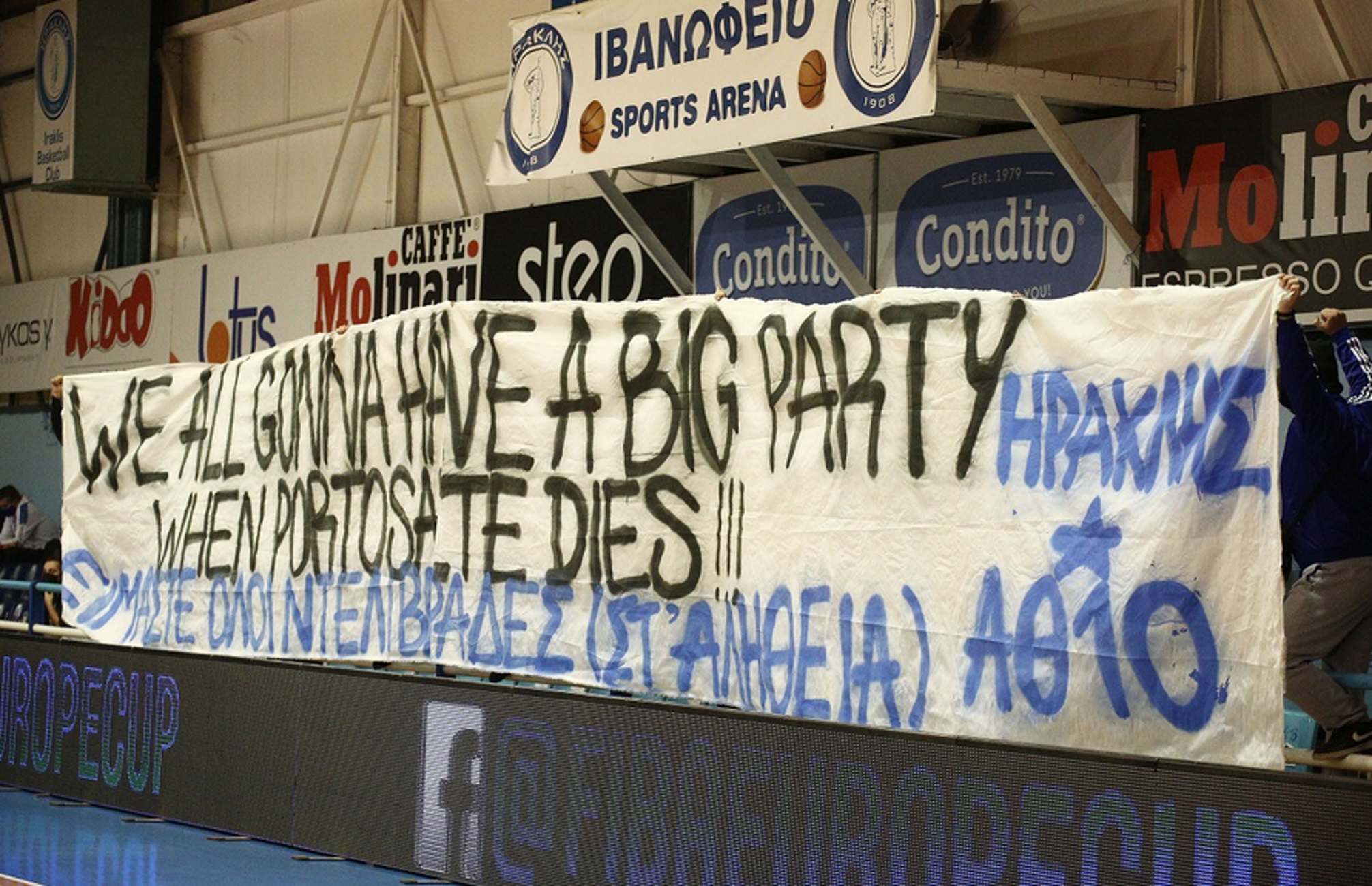Πανό κατά του δημοσιογράφου Άρη Πορτοσάλτε σήκωσαν χθες (03-11-2021) στο Ιβανόφειο οπαδοί του Ηρακλή. Το πανό, ένα μέρος του οποίου ήταν γραμμένο στα αγγλικά, έγραφε πως «θα κάνουμε ένα μεγάλο πάρτι όταν ο Πορτοσάλτε πεθάνει. Είμαστε όλοι Ντελιβεραδες (Στ Αλήθεια)»