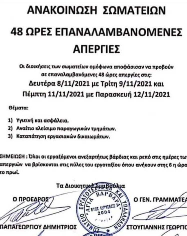 Οι εργαζόμενοι μετά από διαβουλεύσεις με την διοίκηση της εταιρείας κ τον Κ Σκρεκα δεν πήραν αξιόπιστες απαντήσεις και προχωρούν σε επαναλαμβανόμενες απεργίες.