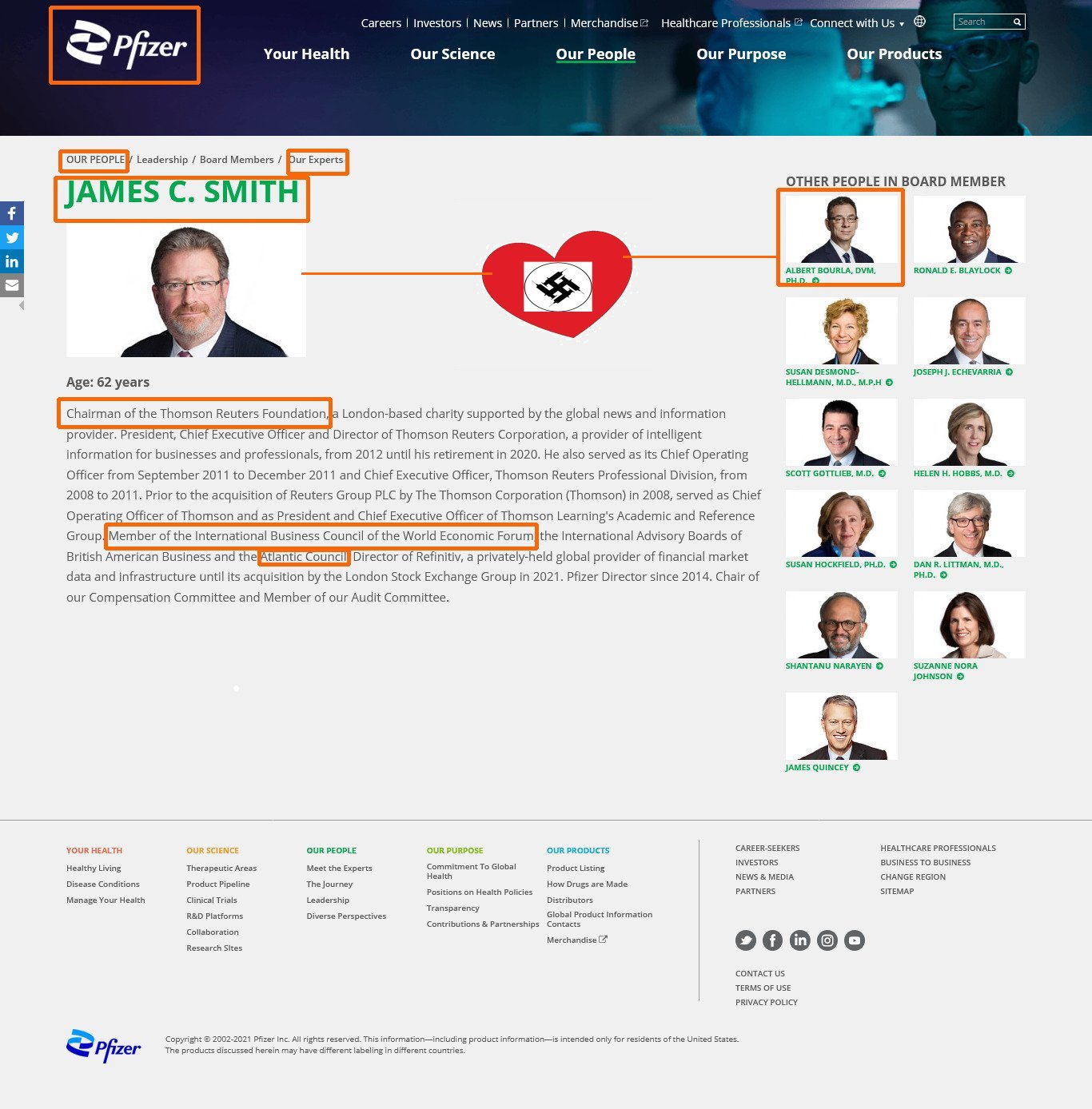 Το συγκεκριμένο ηγετικό στέλεχος του δημοσιογραφικού (υποτίθεται) Ιδρύματος Thomson-Reuters είναι ταυτόχρονα μέλος του Διοικητικού Συμβουλίου της Pfizer και μεγαλοεπενδυτής της, μέλος του Διεθνούς Επιχειρηματικού Συμβουλίου στο Παγκόσμιο Οικονομικό Φόρουμ WEF (του άλλου σεσημασμένου Klaus Schwab, που το 2003 «βράβευσε» τον Μητσοτάκη ως παγκόσμιο ηγέτη του αύριο https://akkelparty.blogspot.com/2021/10/blog-post_16.html), ενώ είναι και στην Συμβουλευτική Επιτροπή του περιβόητου Atlantic Council, που ουσιαστικά λειτουργεί ως ένας τύπος δημοσιοσχετίστικου think tank για τα ακραία και ανθελληνικά συμφέροντα γύρω από το ΝΑΤΟ.