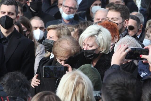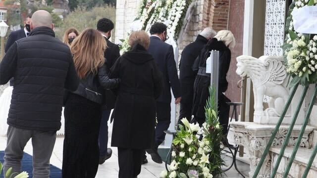 Η σύζυγός του, Μαρία Καρρά, μαυροφορεμένη έφθασε λίγο μετά τις 12.00 στην εκκλησία συνοδευόμενη από μέλη της οικογένειάς της προκειμένου να παρευρεθεί στην εξόδιο ακολουθία του συζύγου της.