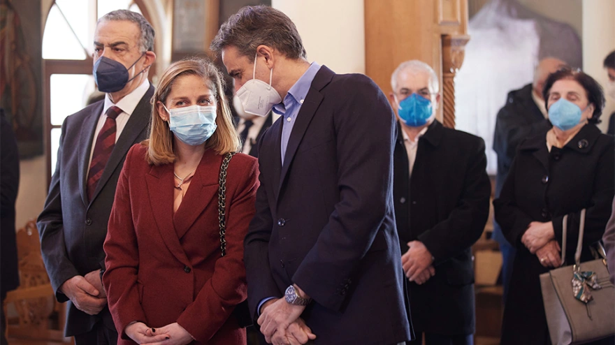 Ο Κυριάκος Μητσοτάκης συνομίλησε με κόσμο και παρακολούθησε τη Θεία λειτουργία.