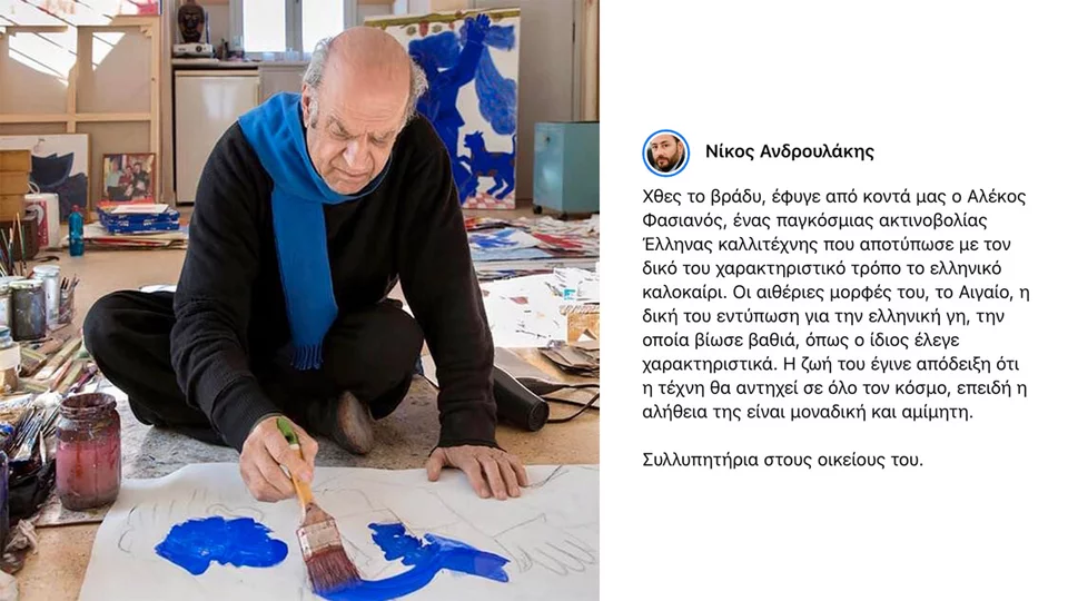 Ένας παγκόσμιας ακτινοβολίας Έλληνας καλλιτέχνης που αποτύπωσε με τον δικό του χαρακτηριστικό τρόπο το ελληνικό καλοκαίρι, αναφέρει για τον Αλέκο Φασιανό, ο Νίκος Ανδρουλάκης.