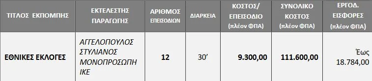 Στην απόφαση του ΔΣ της ΕΡΤ για τα εκλογικά επεισόδια αναφέρεται μεταξύ άλλων και η δαπάνη της παραγωγής, η οποία όπως αναγράφεται «θα επιβαρύνει τον προϋπολογισμό της ΕΡΤ για το οικονομικό έτος 2022» και έχει ως εξής: