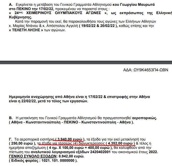 Μέχρι εδώ όλα καλά, παρόλα αυτά υπάρχει κάτι που δεν είναι και τόσο… καλό, καθώς η διαμονή του Γ.Μαυρώτα στην πρωτεύουσα της Κίνας θα μας κοστίσει 4.355 ευρώ, δηλαδή 1.088 ευρώ την βραδιά.