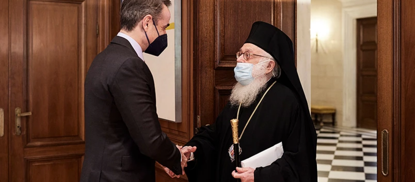 Με τον Μακαριώτατο Αρχιεπίσκοπο Τιράνων, Δυρραχίου και πάσης Αλβανίας κ. Αναστάσιο, συναντήθηκε στο Μέγαρο Μαξίμου ο πρωθυπουργός Κυριάκος Μητσοτάκης.