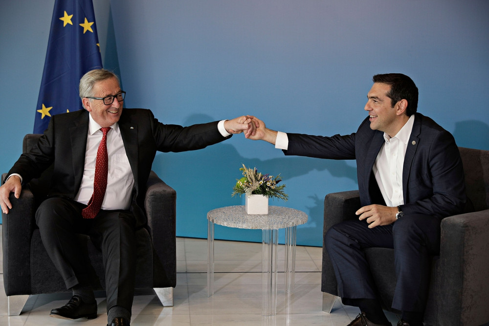«Το είχαμε υποσχεθεί» ήταν η απάντηση του Γιούνκερ, ο οποίος θα ανακηρυχθεί σε επίτιμο διδάκτορα της Νομικής Σχολής του Αριστοτέλειου Πανεπιστημίου, οι δύο άντρες παραχώρησαν κοινή συνέντευξη τύπου με βασικό σημείο την απόφαση της Κομισιόν και την οικονομία της Ελλάδας.
