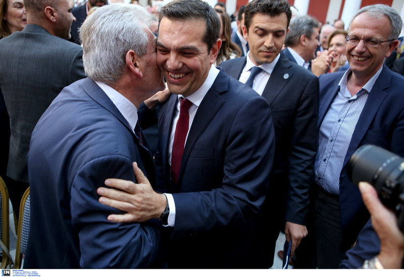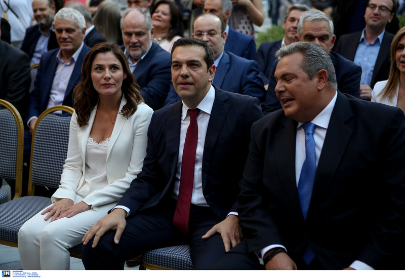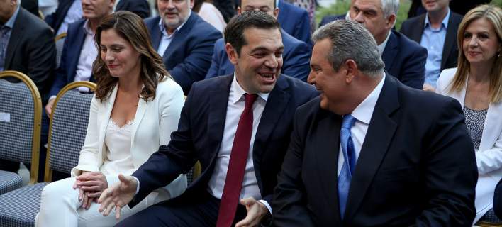 Μετά το τέλος της ομιλίας τόσο ο Α.Τσίπρας όσο και ο Π.Κάμμένος έβγαλαν τις γραβάτες τους και… η παράσταση έλαβε τέλος.