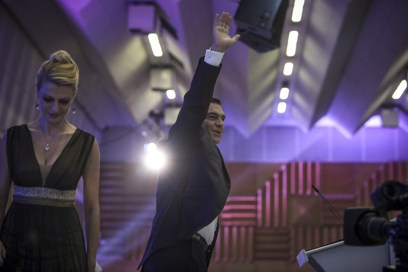 Η ξανθιά παρουσιάστρια δελτίου ειδήσεων της ΕΡΤ3 επέλεξε για τη βραδιά ένα μακρύ μπρονζέ φόρεμα, με ημιδιαφάνειες, σε πολύ βαθύ V, αλλά και με ανοιχτή πλάτη.