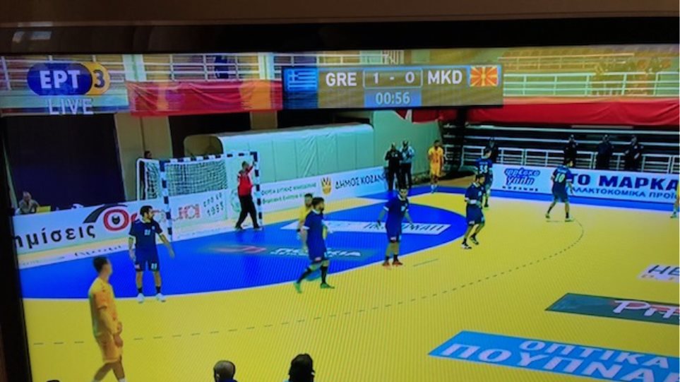 Τον αγώνα, τον οποίο μεταδίδει η ΕΡΤ3, και όπως φαίνεται από τον πίνακα του σκορ εμφανίζει την γειτονική χώρα ως… MKD, δηλαδή «Μακεδονία».