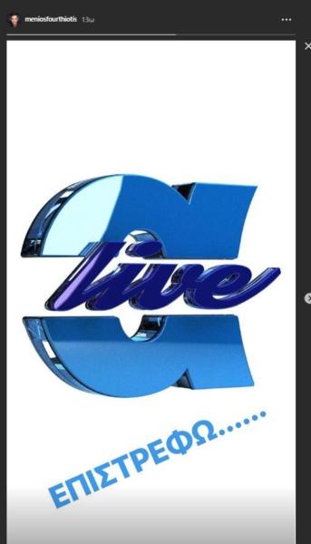 Πλέον, ο Μένιος, μετά την οργισμένη ανακοίνωση που εξέδωσε για το κανάλι, κατηγορώντας το για εμπάθεια, ανακοίνωσε μέσω του προσωπικού του λογαριασμού στο Instagram, ότι η εκπομπή επιστρέφει στον τηλεοπτικό αέρα.