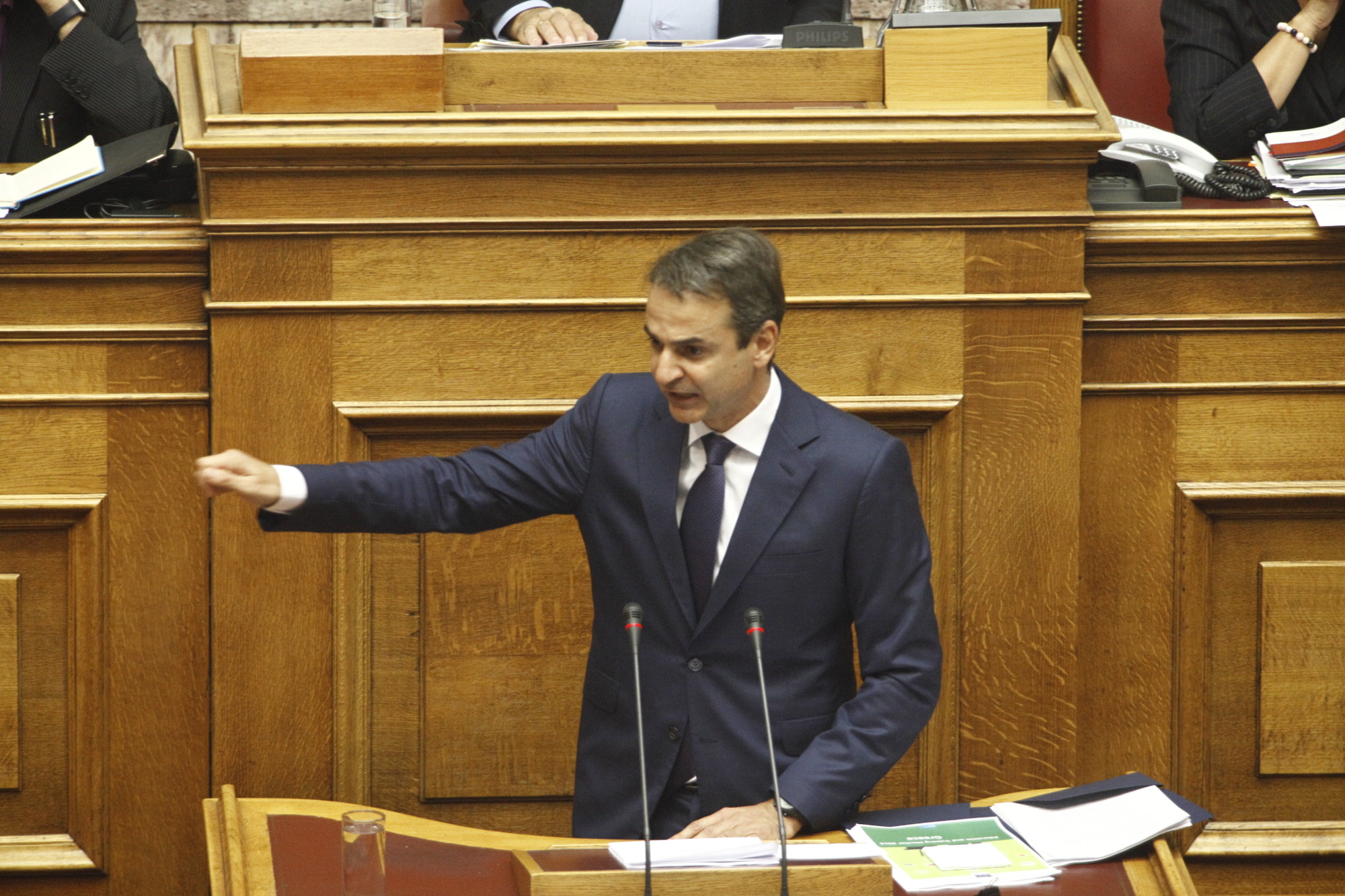 «Περάστε έξω κυρία μου», ήταν η φράση που είπε δυο φορές ο Κυριάκος Μητσοτάκης, δείχνοντας έτσι την ενόχλησή του.