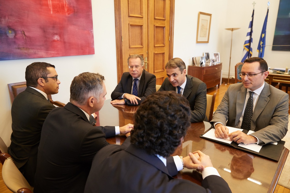 Ο πρόεδρος της Νέας Δημοκρατίας κ. Μητσοτάκης δέχτηκε τον κ. Παπαδόπουλο στο γραφείο του στη Βουλή.