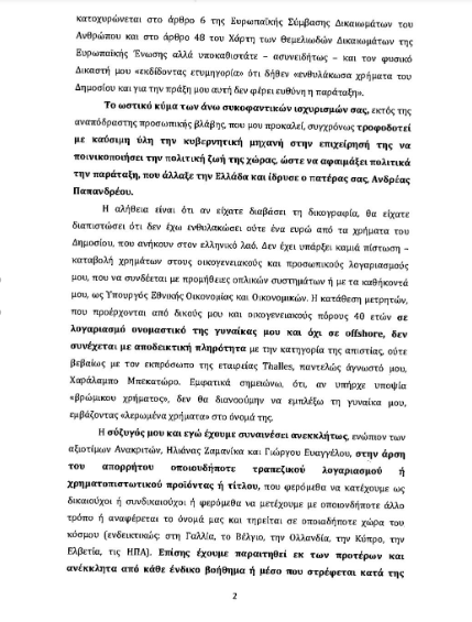 Ο κ. Παπαντωνίου εκφράζει την έντονη διαμαρτυρία του κάνει λόγο για διάδοση εκ μέρους του Νίκου Παπανδρέου, ψευδών γεγονότων σε βάρος του, που πλήττουν και αμαυρώνουν την τιμή και την υπόληψή του. Επιπροσθέτως κάνει λόγο για ασύμμετρη και συκοφαντική προπέτεια, που αμαυρώνει το τεκμήριο της αθωόητάς του και εκτός από την προσωπική βλάβη που προκαλεί, τροφοδοτεί με καύσιμη ύλη την κυβερνητική μηχανή προκειμένου να ποινικοποιήσει την πολιτική ζωή της χώρας και να αφαιμάξει πολιτικά την παράταξη που ίδρυσε ο Ανδρέας Παπανδρέου.
