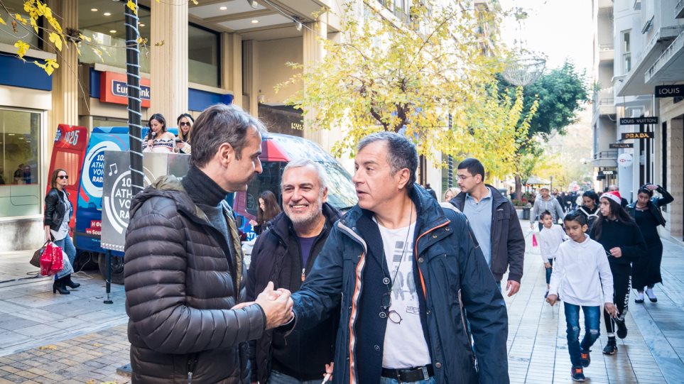 O Σταύρος Θεοδωράκης συναντήθηκε με τον Κυριάκο Μητσοτάκη σε υπαίθριο πάρτι μουσικού ραδιοφωνικού σταθμού που πραγματοποιήθηκε στο κέντρο της Αθήνας.