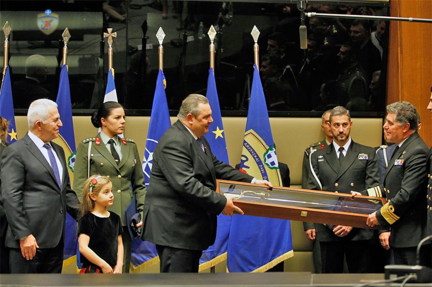 «Παραδίδω την ηγεσία του υπουργείου Εθνικής Άμυνας μετά από τέσσερα συναπτά έτη, έχοντας πλήρη επίγνωση της ύψιστης τιμής που μου έγινε αλλά και της ευθύνης που ανέλαβα έναντι των ενόπλων μας δυνάμεων. Σε μία περίοδο με δημοσιονομικούς περιορισμούς και την αστάθεια στην ευρύτερη περιοχή της Ανατολικής Ευρώπης και της νοτιοανατολικής Μεσογείου. Συνοδοιπόροι μου σε αυτό το ταξίδι ήταν ο Πρωθυπουργός Αλέξης Τσίπρας, που μου εμπιστεύτηκε αυτό το υπουργείο, οι αναπληρωτές υπουργοί και το σύνολο των συνεργατών του υπουργείου», ανέφερε ο κ. Καμμένος.