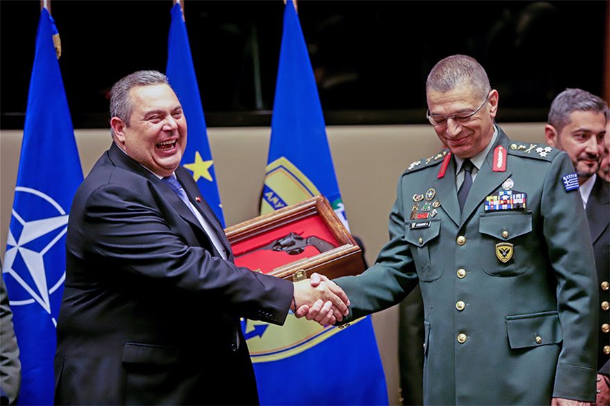 Ολοκληρώθηκε η τελετή παράδοσης – παραλαβής της ηγεσίας του υπουργείου Εθνικής Αμύνης. Πάνος Καμμένος και Ευάγγελος Αποστολάκης αντάλλαξαν φιλοφρονήσεις και επικράτησε συγκίνηση.