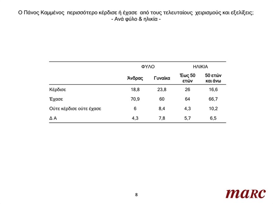 Οι συμμετέχοντες στο πανελλαδικό γκάλοπ της Marc ρωτήθηκαν αν νομίζουν ότι ο Πάνος Καμμένος κέρδισε ή έχασε από τους τελευταίους χειρισμούς και εξελίξεις.