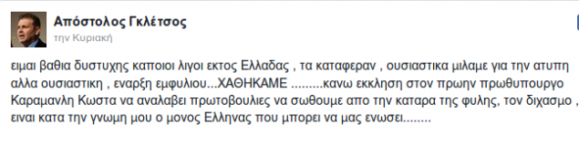 Ολόκληρη η ανάρτηση του Απόστολου Γκλέτσου:
