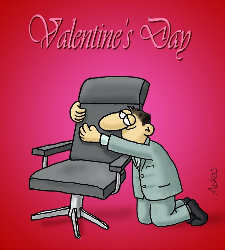 Το σκίτσο δημοσιεύθηκε μια ημέρα πριν τον Αγιο Βαλεντίνο στην ιστοσελίδα του στο Facebook και παραπέμπει σε στέλεχος της κυβέρνησης που κρατά σφιχτά στην αγκαλιά του την αγαπημένη του… καρέκλα.