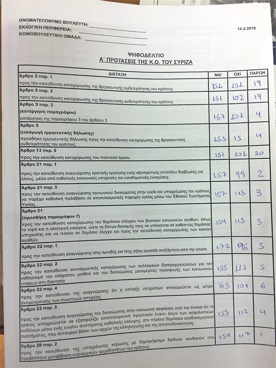 Επώδυνη ήττα στο ζήτημα της εκλογής του Προέδρου της Δημοκρατίας και πολιτική φθορά για την θρησκευτική ουδετερότητα είναι τα αποτελέσματα που εισέπραξε η πλειοψηφία από την πρώτη ψηφοφορία στην Βουλή για την Συνταγματική Αναθεώρηση.