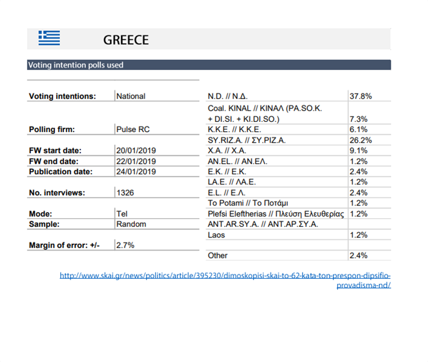 Η έρευνα από το ευρωκοινοβούλιο αφορά κάθε χώρα ξεχωριστά, έγινε με την αξιοποίηση και των ευρημάτων από εθνικές δημοσκοπήσεις και δεν πρόκειται για κλασικό γκάλοπ, αλλά για πρόβλεψη των αποτελεσμάτων με βάση όσα φαίνονται από τα στοιχεία έως τις 30 Ιανουαρίου.