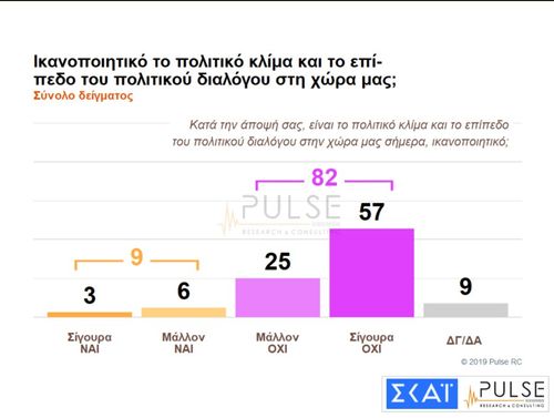 Αρνητικά κρίνει η συντριπτική πλειοψηφία του δείγματος το πολιτικό κλίμα και το επίπεδο του πολιτικού διαλόγου της χώρας.