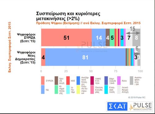 Σε ιδιαιτέρως χαμηλά επίπεδα εξακολουθεί να παραμένει η συσπείρωση του ΣΥΡΙΖΑ, που με βάση τους ψηφοφόρους του Σεπτεμβρίου του 2015, τοποθετείται μόλις στο 51%. Αντιθέτως, με την ίδια συγκριτική χρονική βάση, η συσπείρωση της ΝΔ καταγράφεται στο 81%.