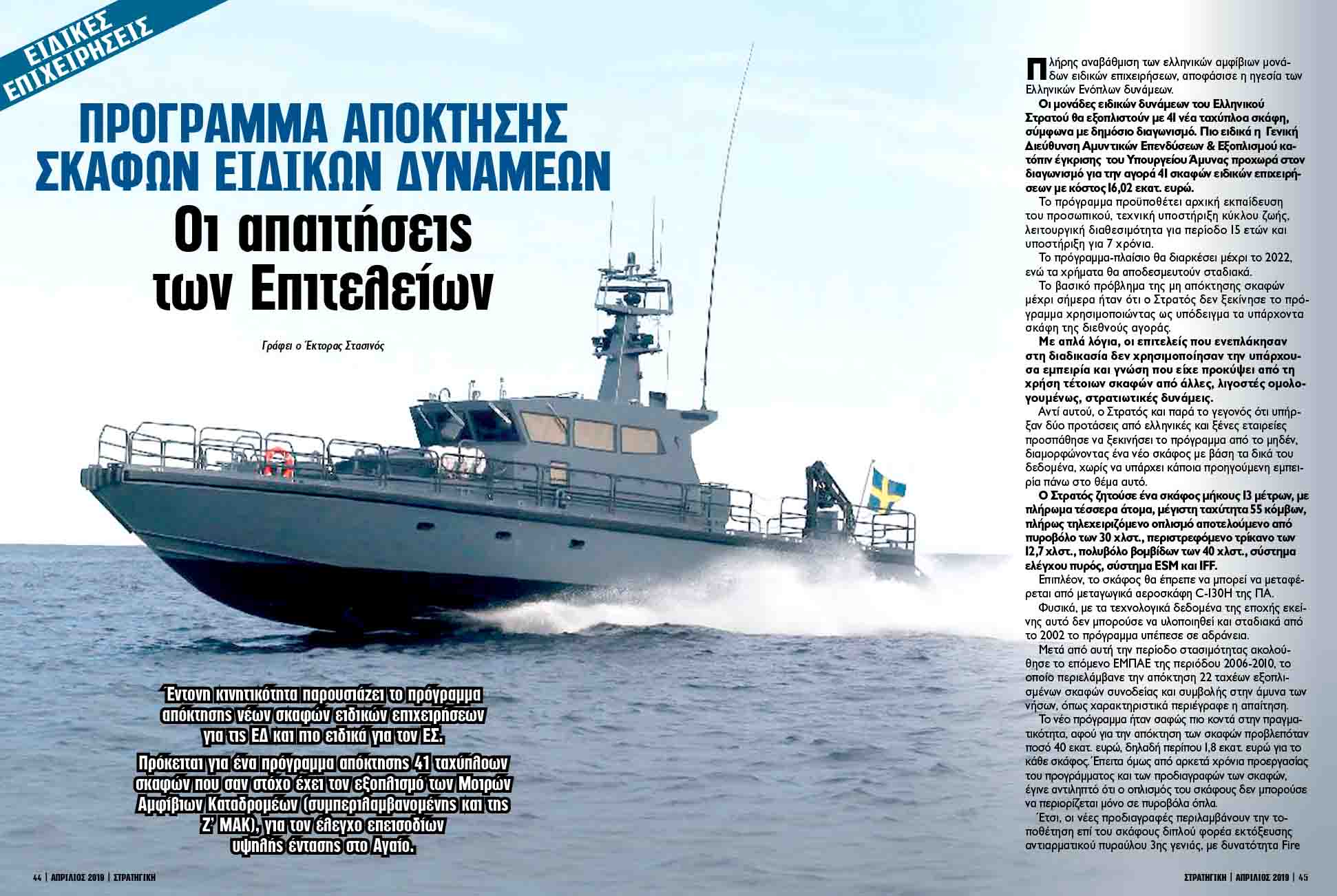Έντονη κινητικότητα παρουσιάζει το πρόγραμμα απόκτησης νέων σκαφών ειδικών επιχειρήσεων για τις ΕΔ και πιο ειδικά για τον ΕΣ.