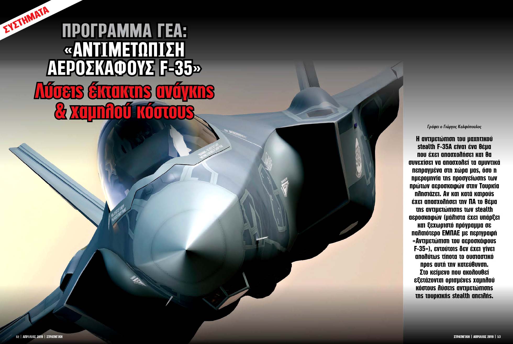 Πρόγραμμα ΓΕΑ: «ΑΝΤΙΜΕΤΩΠΙΣΗ ΑΕΡΟΣΚΑΦΟΥΣ F-35» – Λύσεις έκτακτης ανάγκης & χαμηλού κόστους