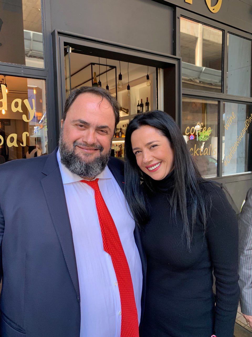 Ο πρόεδρος του Ολυμπιακού Ε.Μαρινάκης με την υποψήφια δημοτική σύμβουλο Ε.Κάτρη Μεϊντάση