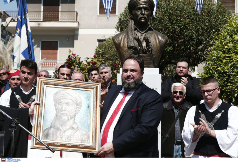 Συγκίνηση στα αποκαλυπτήρια της προτομής του Νικηταρά του Τουρκοφάγου στον Πειραιά. Μια προτομή που έγινε με χορηγία του Βαγγέλη Μαρινάκη στη μνήμη του πατέρα του, Μιλτιάδη Μαρινάκη