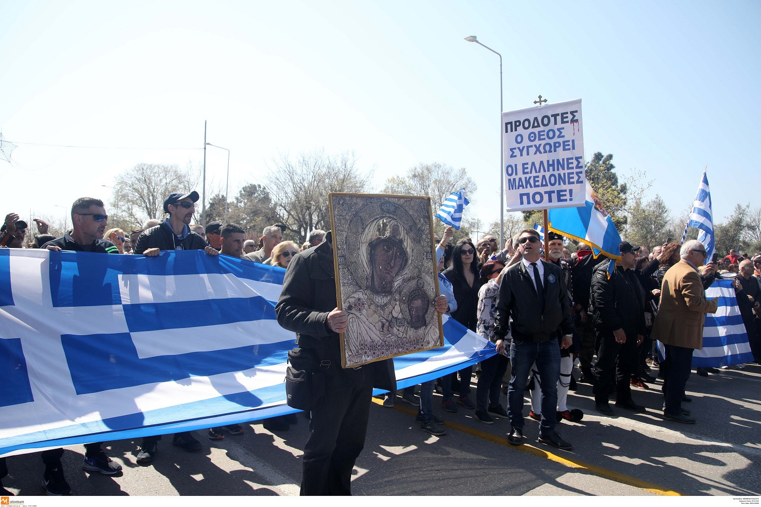 Στα Τρίκαλα κατά την διάρκεια της παρέλασης για τον εορτασμό της της 25ης Μαρτίου, μέλη του ΑΚΕΠ και της ΛΑΕ επιχείρησαν να διαμαρτυρηθούν για τη Συμφωνία των Πρεσπών.