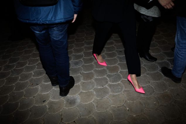 Η κα Νοτοπούλου γι’ αυτή της την εμφάνιση επέλεξε να φορέσει κλασσικό κοστούμι με λευκό πουκάμισο, κάνοντας τη διαφορά με τις γόβες της. Η υποψήφια δήμαρχος Θεσσαλονίκης φόρεσε γυαλιστερές neon ροζ γόβες.