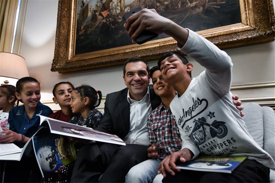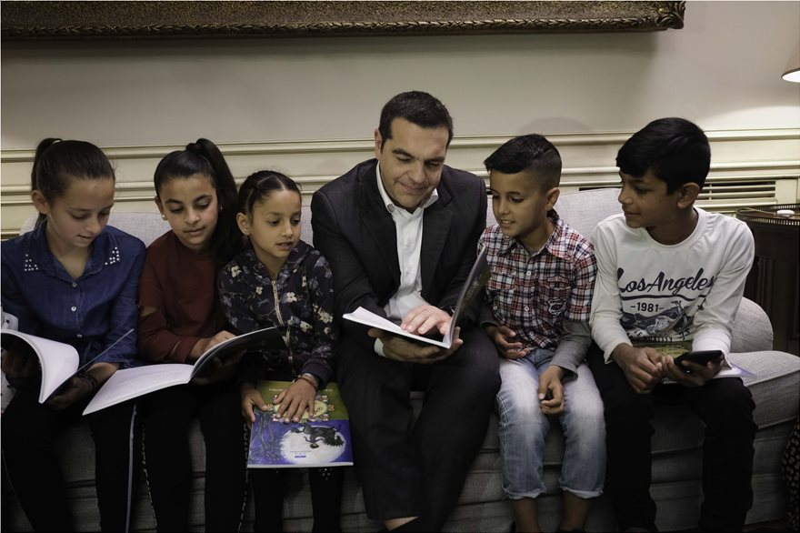 Ανάμεσα στους περίπου 50 Ρομά που βρέθηκαν στο Μαξίμου ήταν και μικρά παιδιά στα οποία ο Αλέξης Τσίπρας διάβασε και παραμύθια.