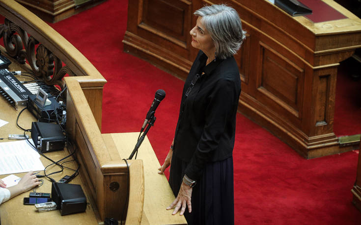 Πολιτικό όρκο για το βουλευτικό αξίωμα, έδωσε ενώπιον της Ολομέλειας η Αντιγόνη Λυμπεράκη, εκλεγείσα με το Ποτάμι στις τελευταίες εθνικές εκλογές.