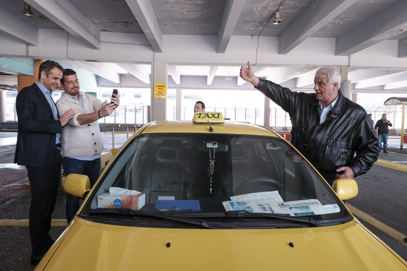 Πρώτη τους στάση ήταν η πιάτσα των ταξί στην Πύλη του Λιμανιού όπου είχαν και οι δύο την ευκαιρία να συνομιλήσουν με οδηγούς ταξί καθώς και το προεδρείο του σωματείου τους στον Πειραιά.