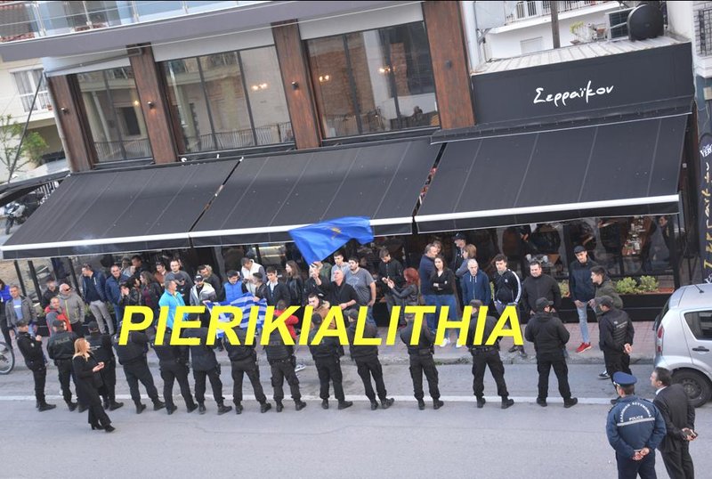 Οι κάτοικοι της Κατερίνης είχαν συγκεντρωθεί έξω από το Επιμελητήριο,όπου θα γινόταν η εκδήλωση της Νομαρχιακής Επιτροπής του ΣΥΡΙΖΑ Πιερίας. Οι πολίτες διαμαρτύρονταν για τη Συμφωνία των Πρεσπών και φώναζαν συνθήματα κατά της κυβέρνησης.