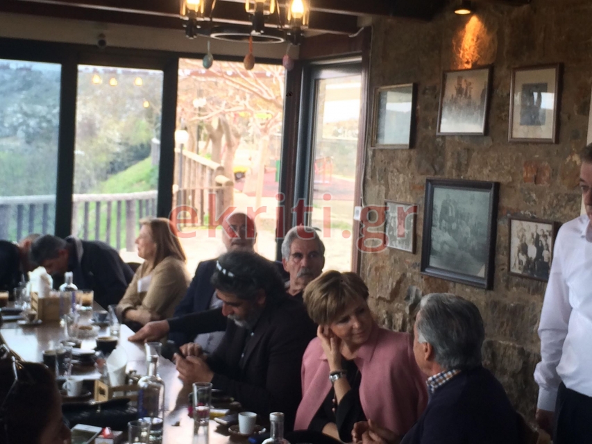 Η υπουργός με τους συνεργάτες βρέθηκε και στο Ντελίνα για καφέ όπου εκεί συνάντησε τον γνωστό Κρητικό καλλιτέχνη Βασίλη Σκουλά.